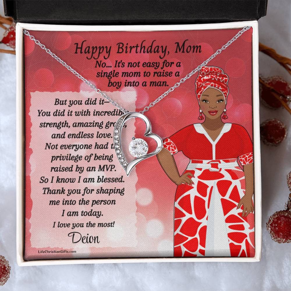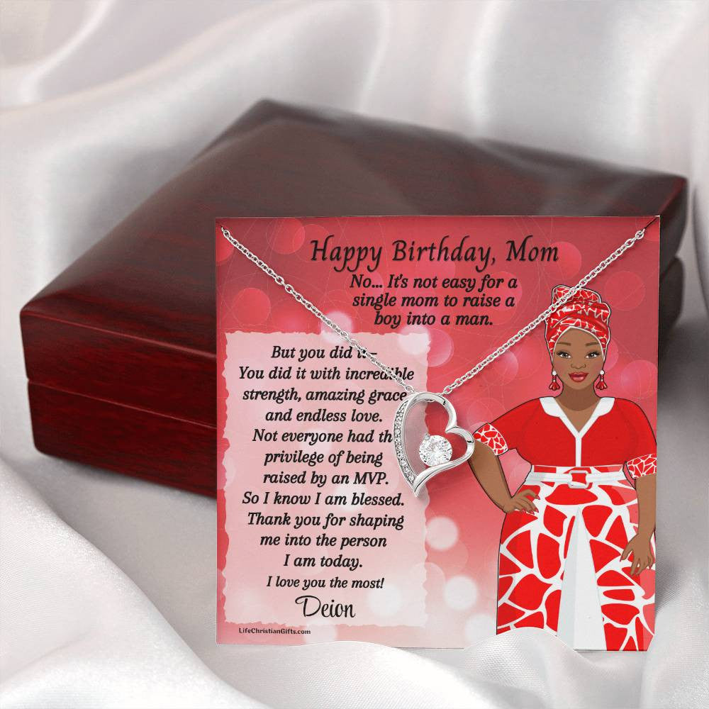 African American Mom Birthday Message Card - Forever Love Necklace - MVP Red