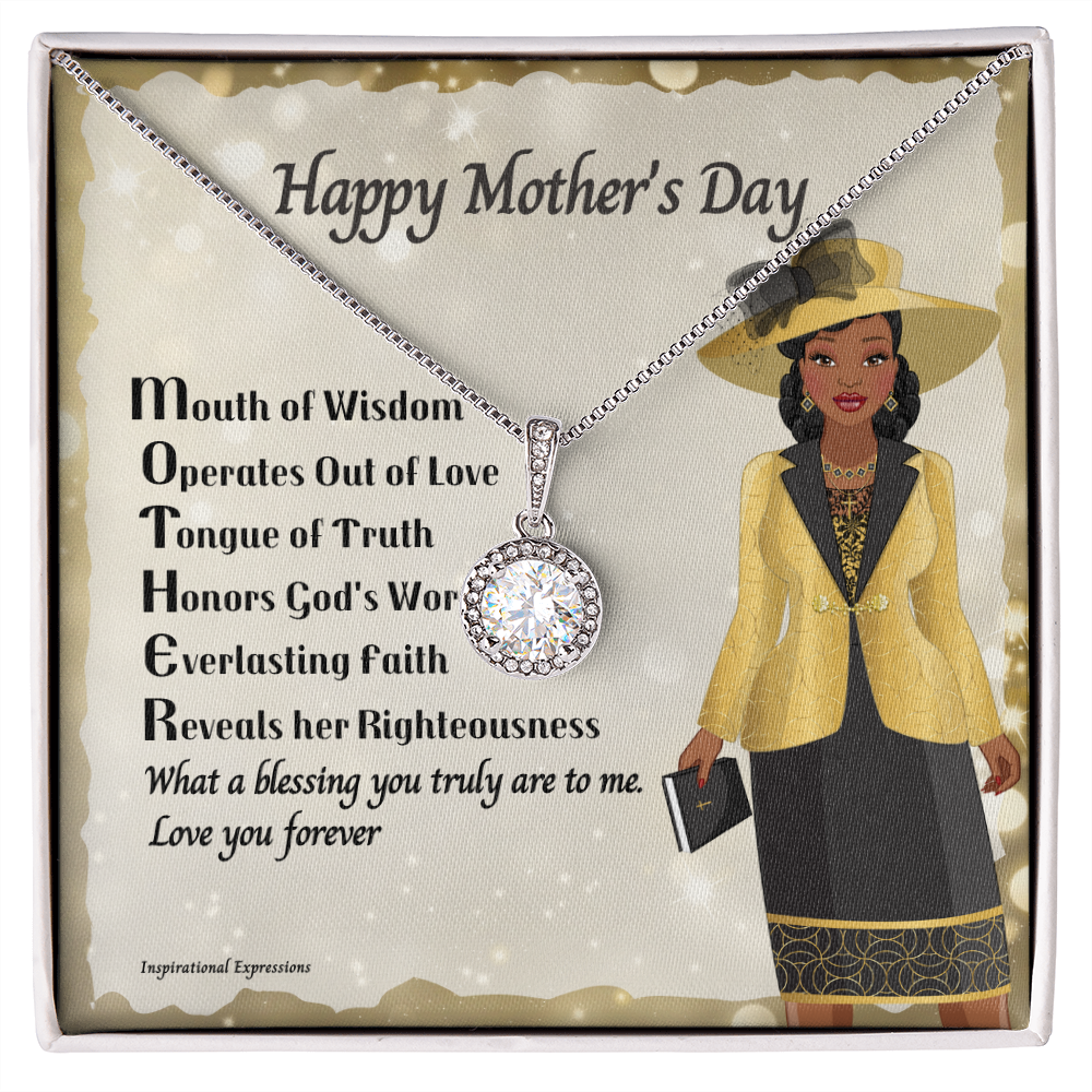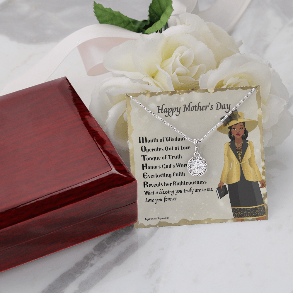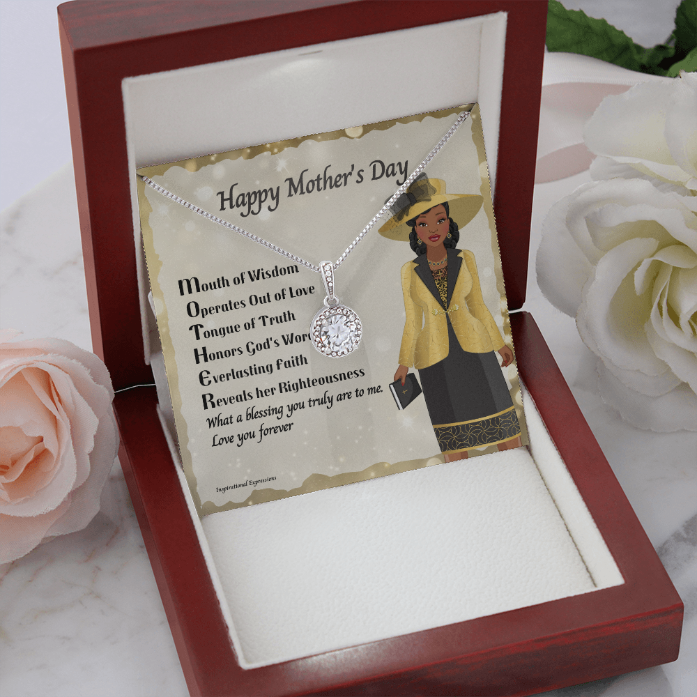 African American Woman Mother's Day Message Card and Eternal Hope Necklace for Christian Mom - Acronym