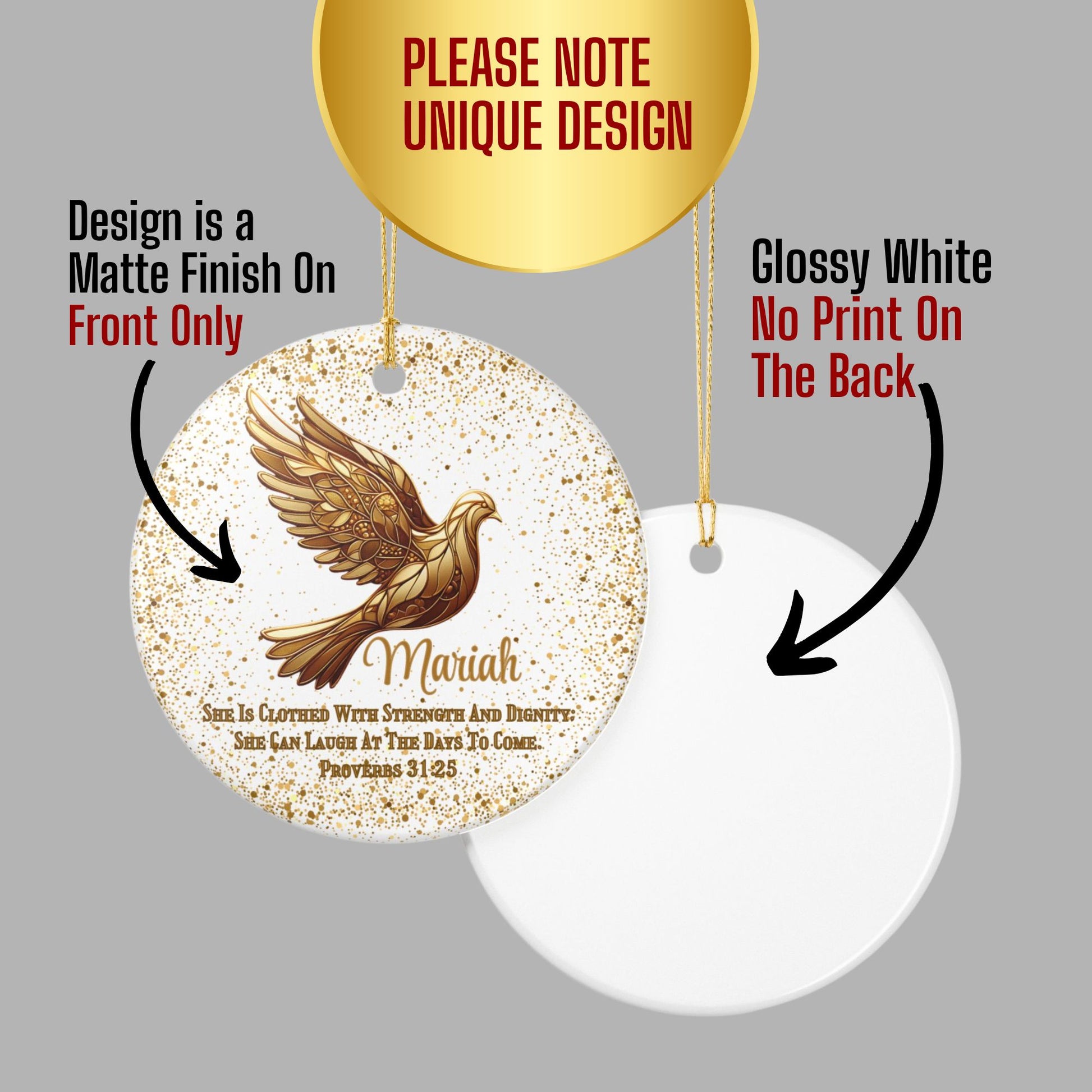 Personalized Gold Dove Christian Ornament – Proverbs 31:25