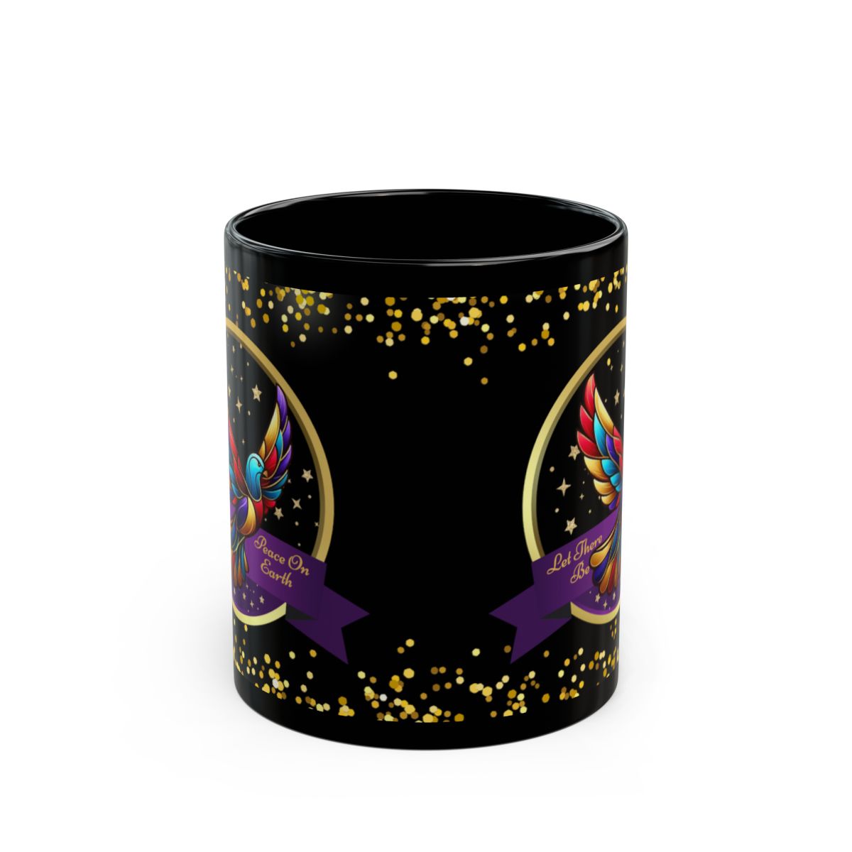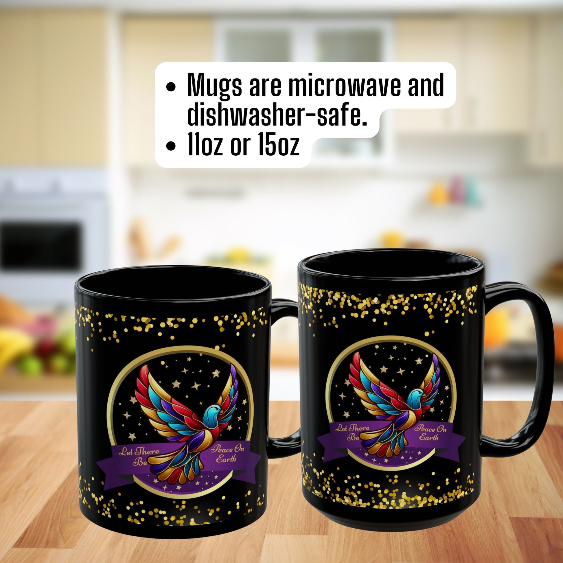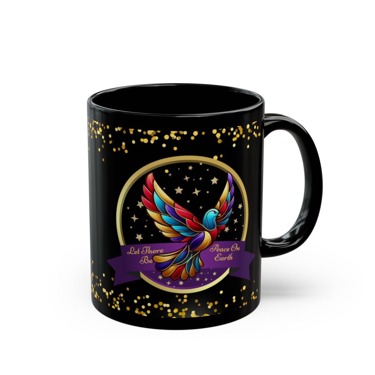 Celebrate the true spirit of Christmas with this beautifully designed Christian mug, featuring a radiant, multicolored dove surrounded by golden stars and the heartfelt message: “Let There Be Peace on Earth.” The glossy black background with shimmering golden accents makes this mug a meaningful and eye-catching addition to your holiday season.