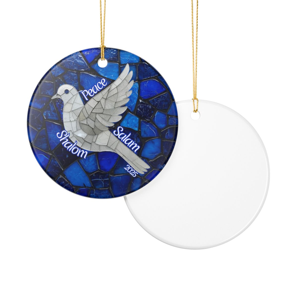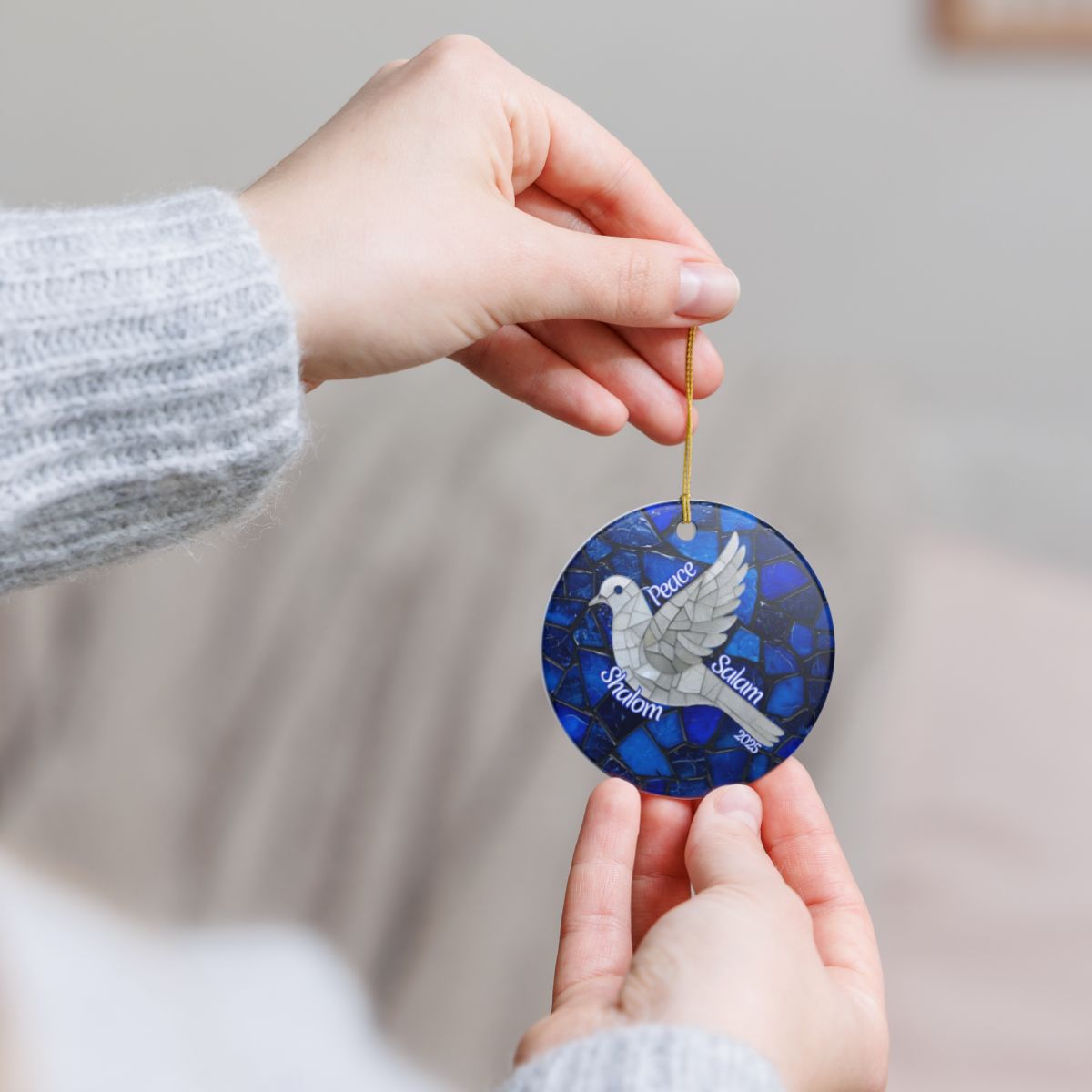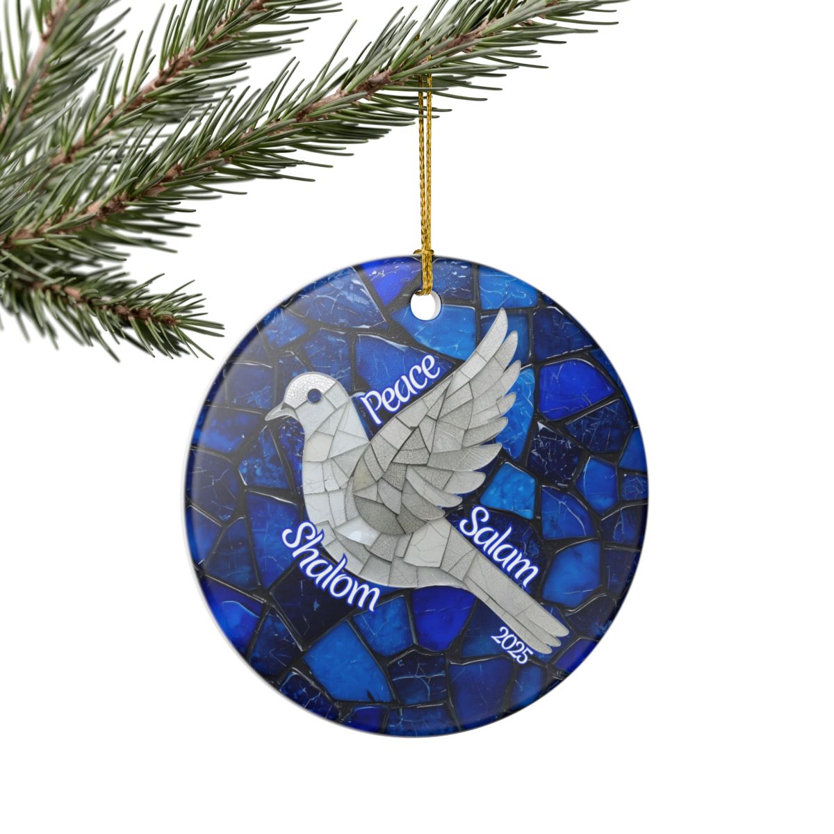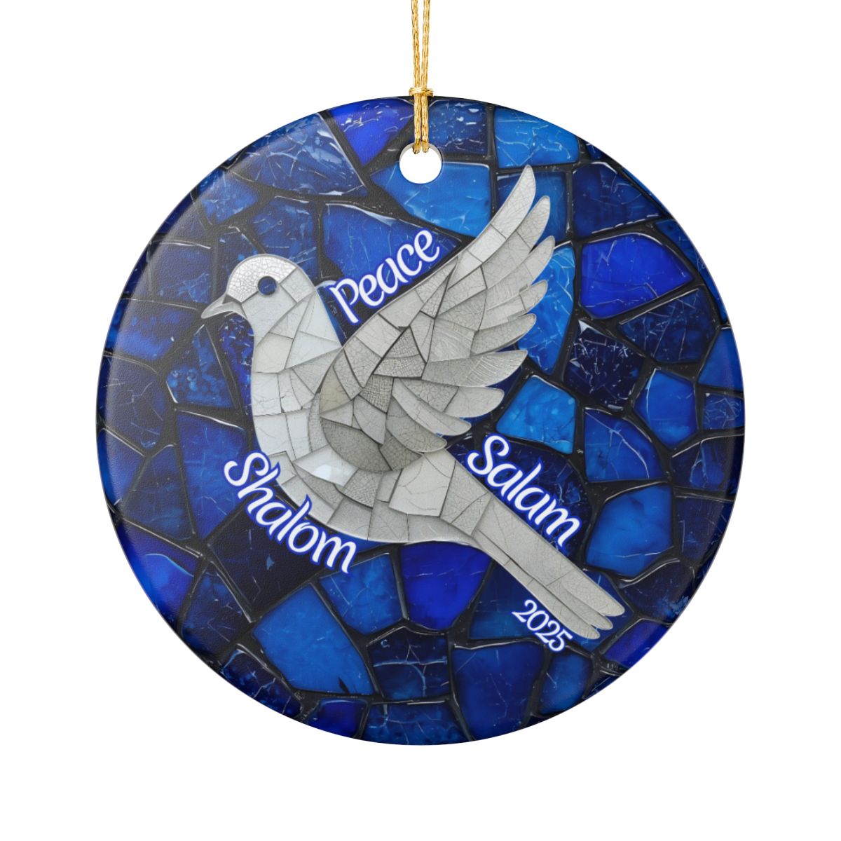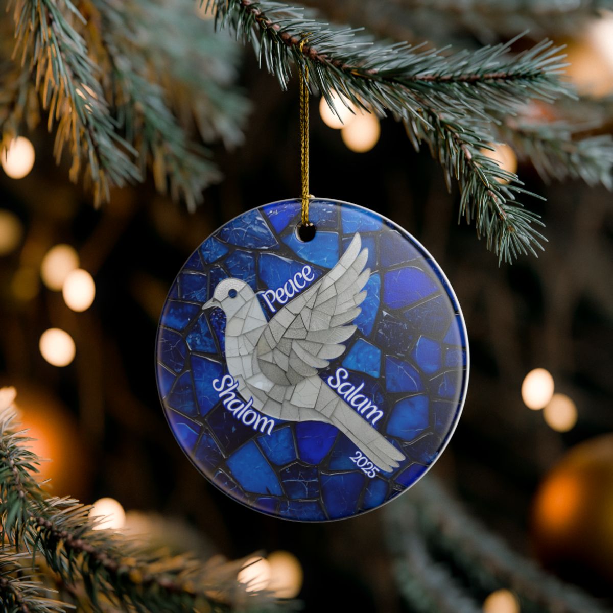 Dove Peace Ornament – Christmas Tree Decoration with Shalom, Salam & Peace Design (2025)