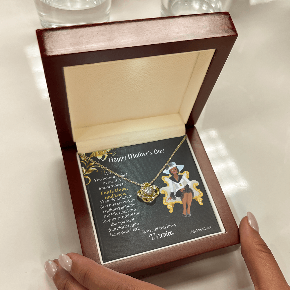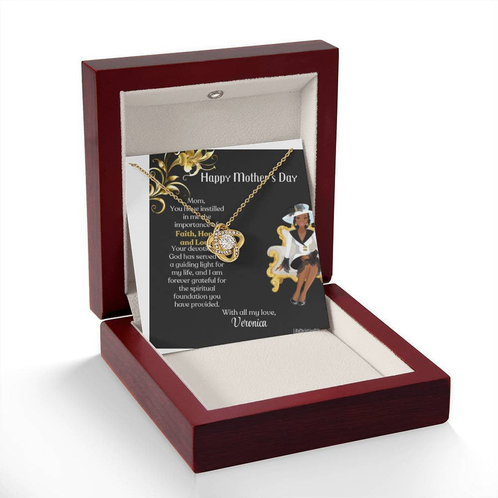 Personalized African American Mother's Day Card - Love Knot Necklace - Faith Hope Love