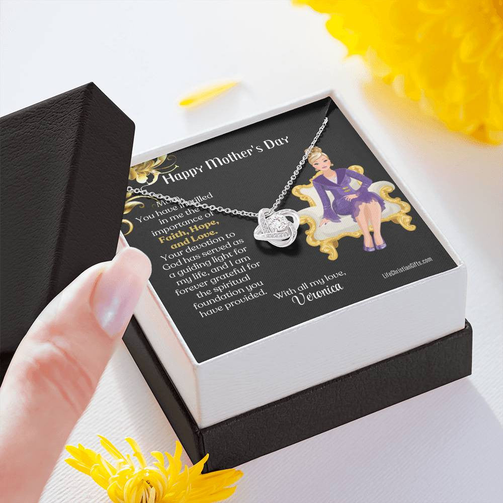 Personalized Mother's Day Card - Love Knot Necklace - Faith Hope Love