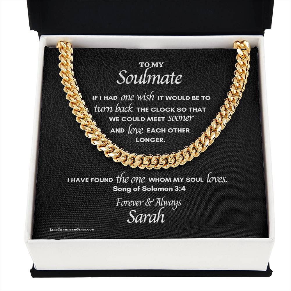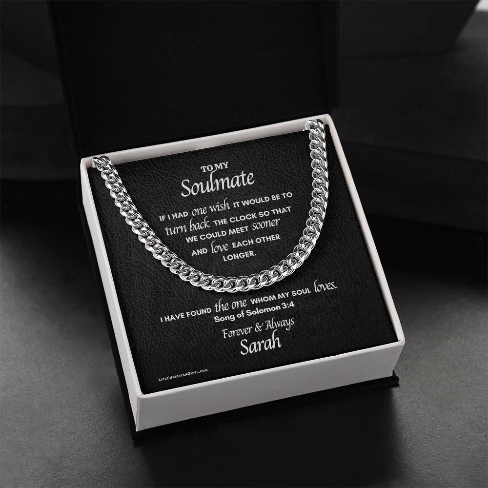 Soulmate Song of Solomon Message Card Men's Stainless Steel Cuban Link Chain