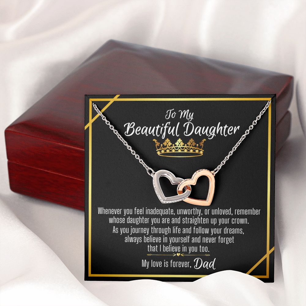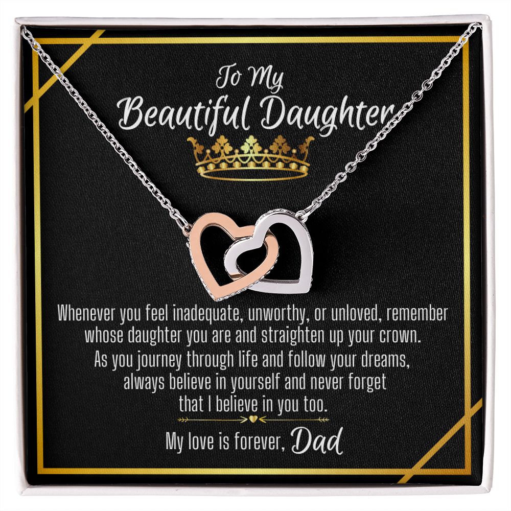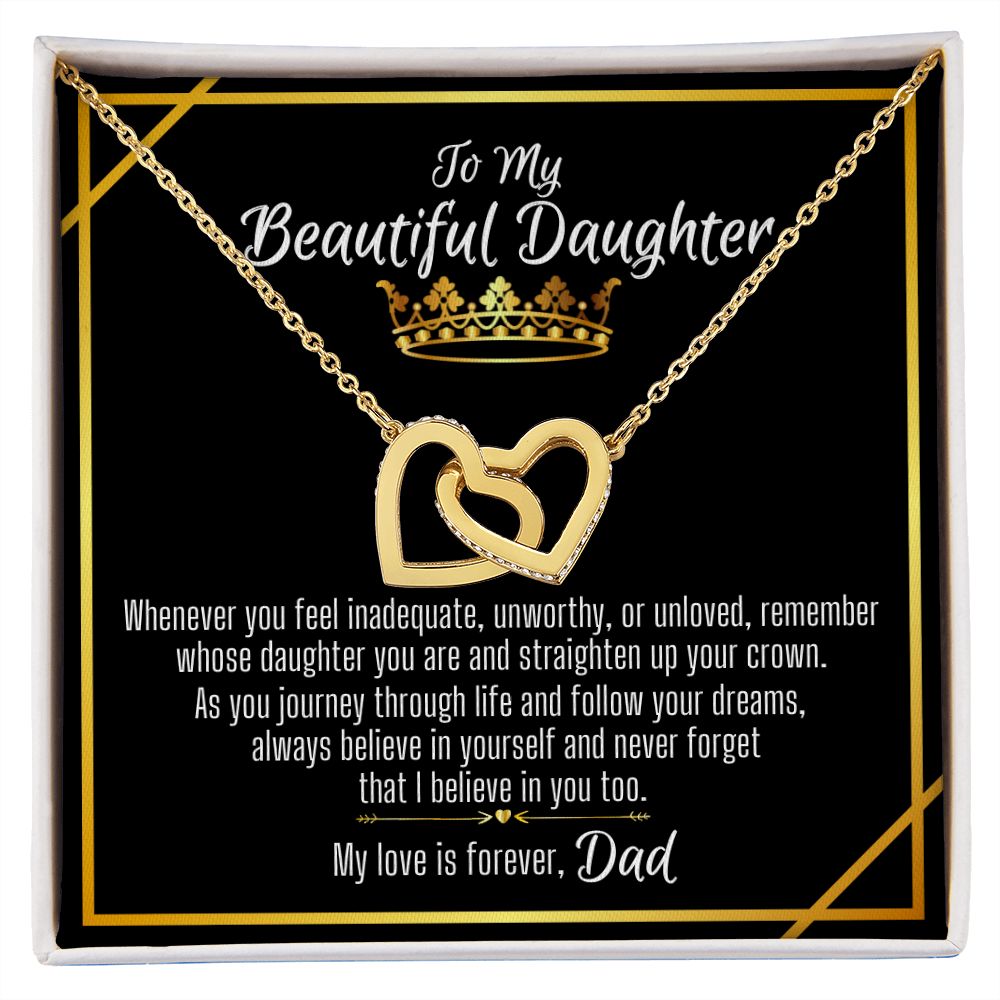 To Daughter From Dad Interlocking Hearts Necklace - Believe Crown