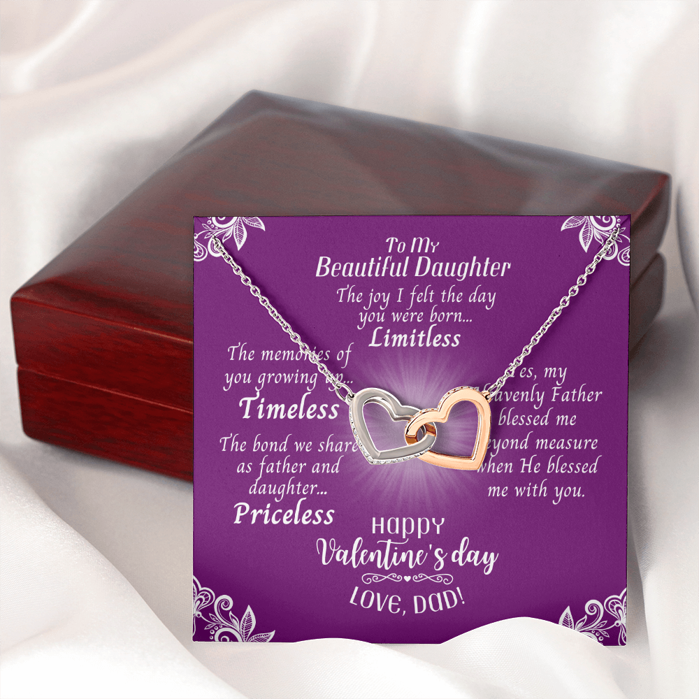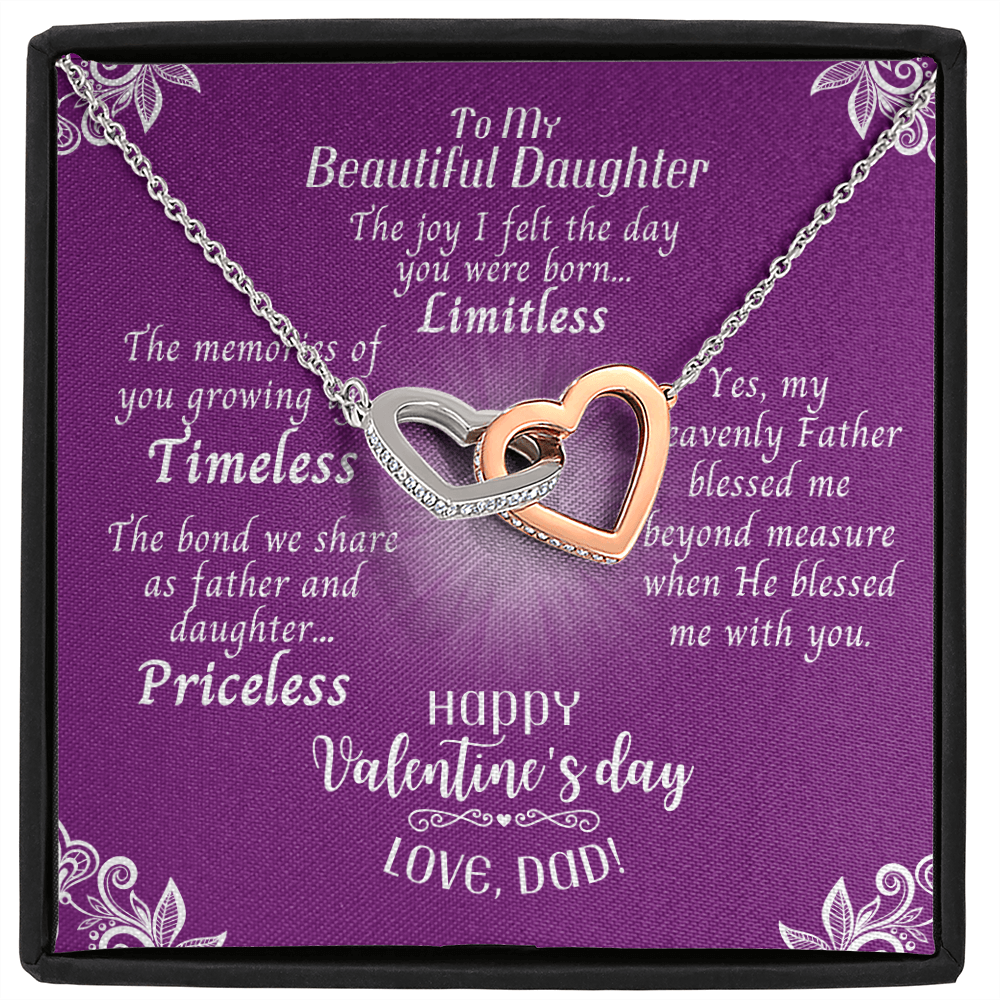 To My Daughter - Interlocked Hearts Necklace With Valentine's Day Message Card - Priceless