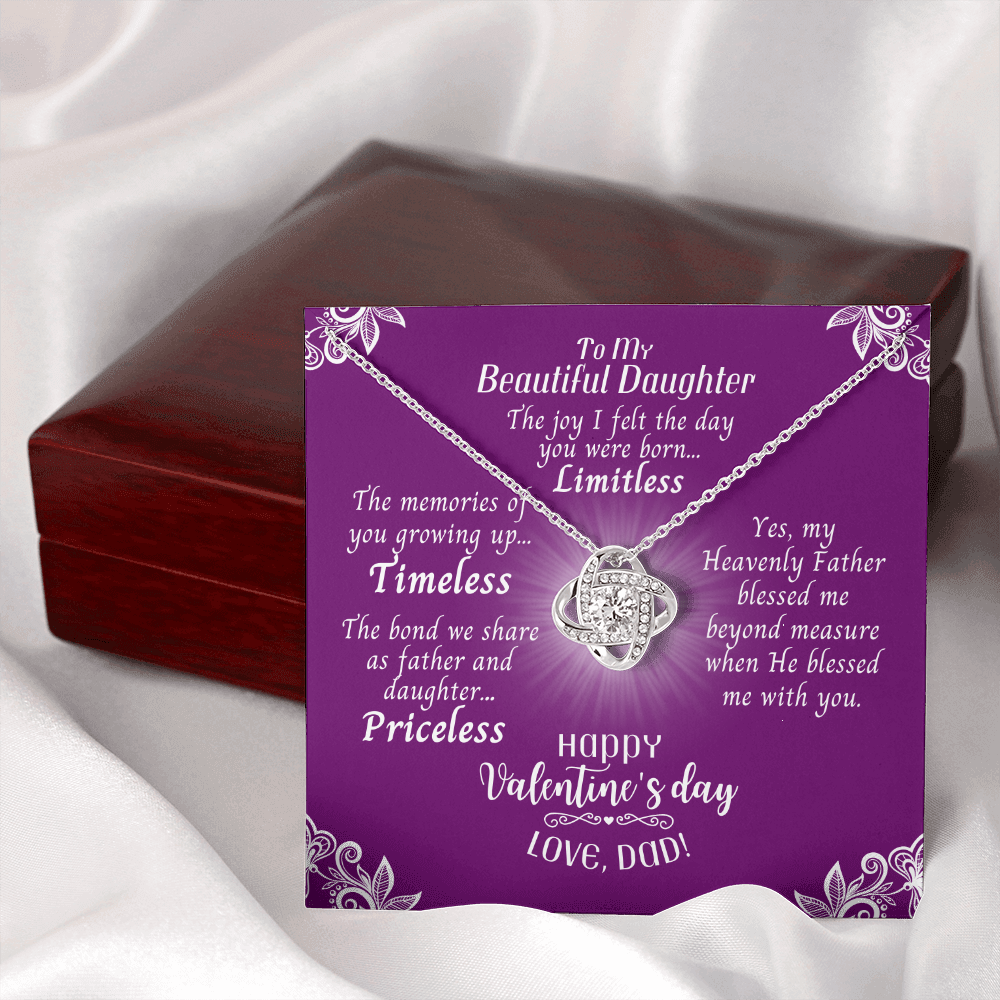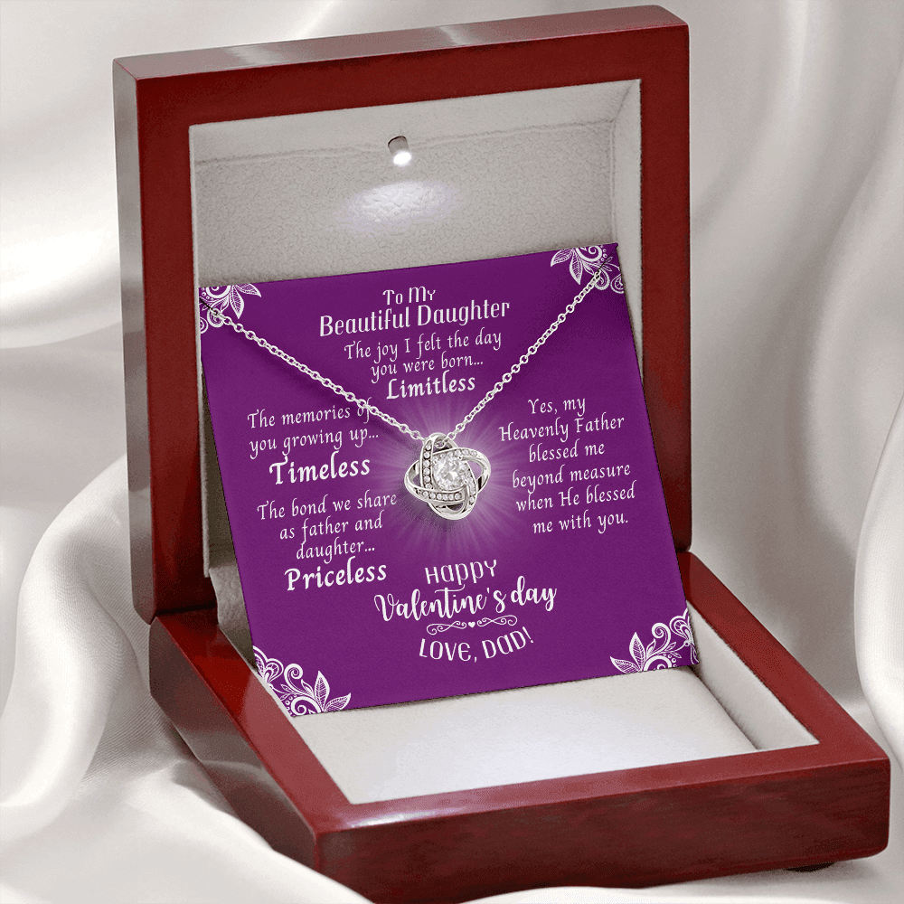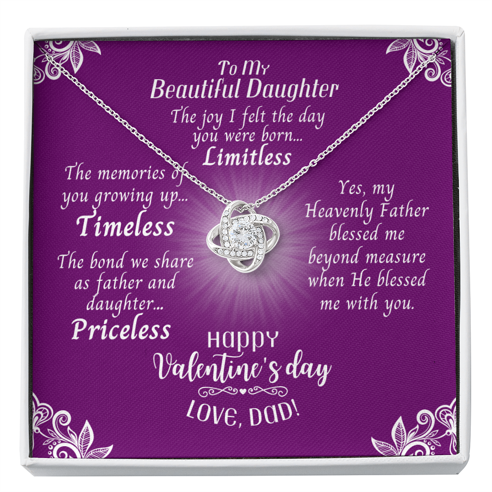 To My Daughter - Love Knot Necklace With Valentine's Day Message Card - Priceless