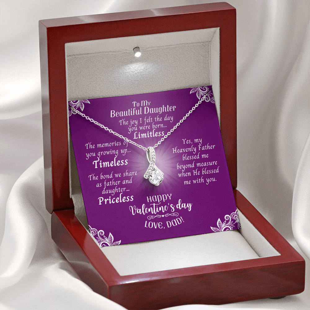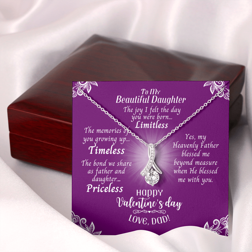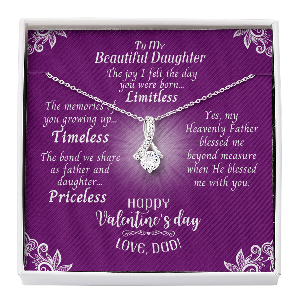 To My Daughter - Ribbon Shaped Necklace With Valentine's Day Message Card - Priceless